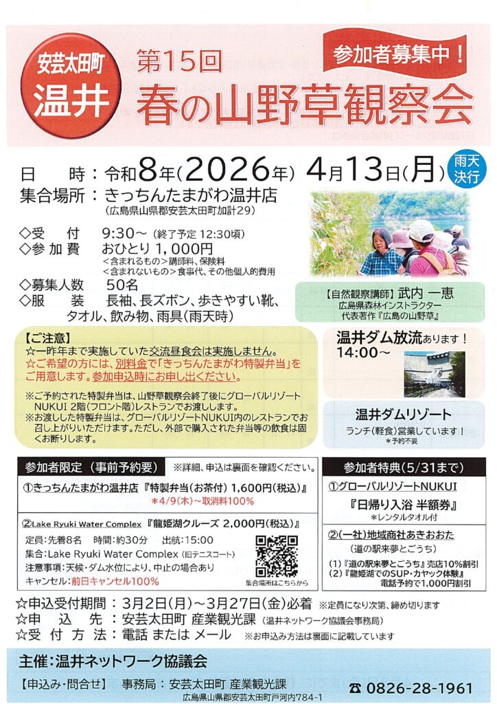 ※定員になり次第締め切ります - 申込先:安芸太田町 産業観光課(温井ネットワーク協議会事務局)