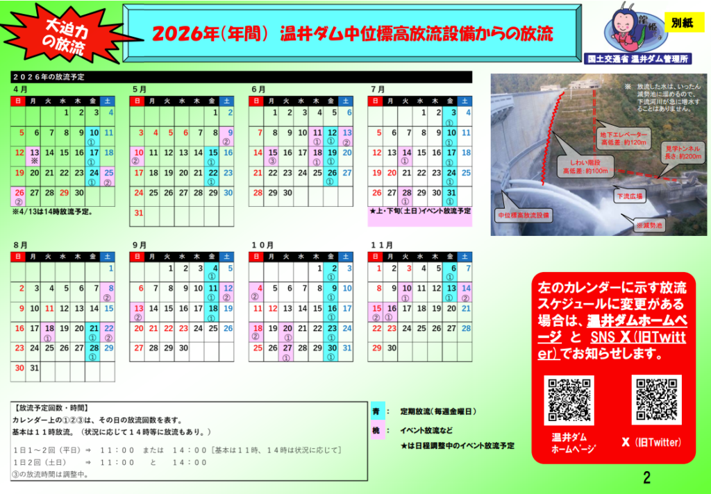 放流予定は変更となる場合があります。最新情報は現地案内等もあわせてご確認ください。